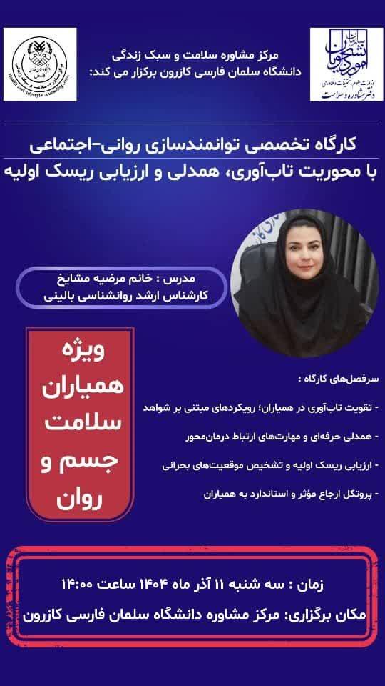مرکز مشاوره، سلامت و سبک زندگی دانشگاه سلمان فارسی کازرون برگزار میکند