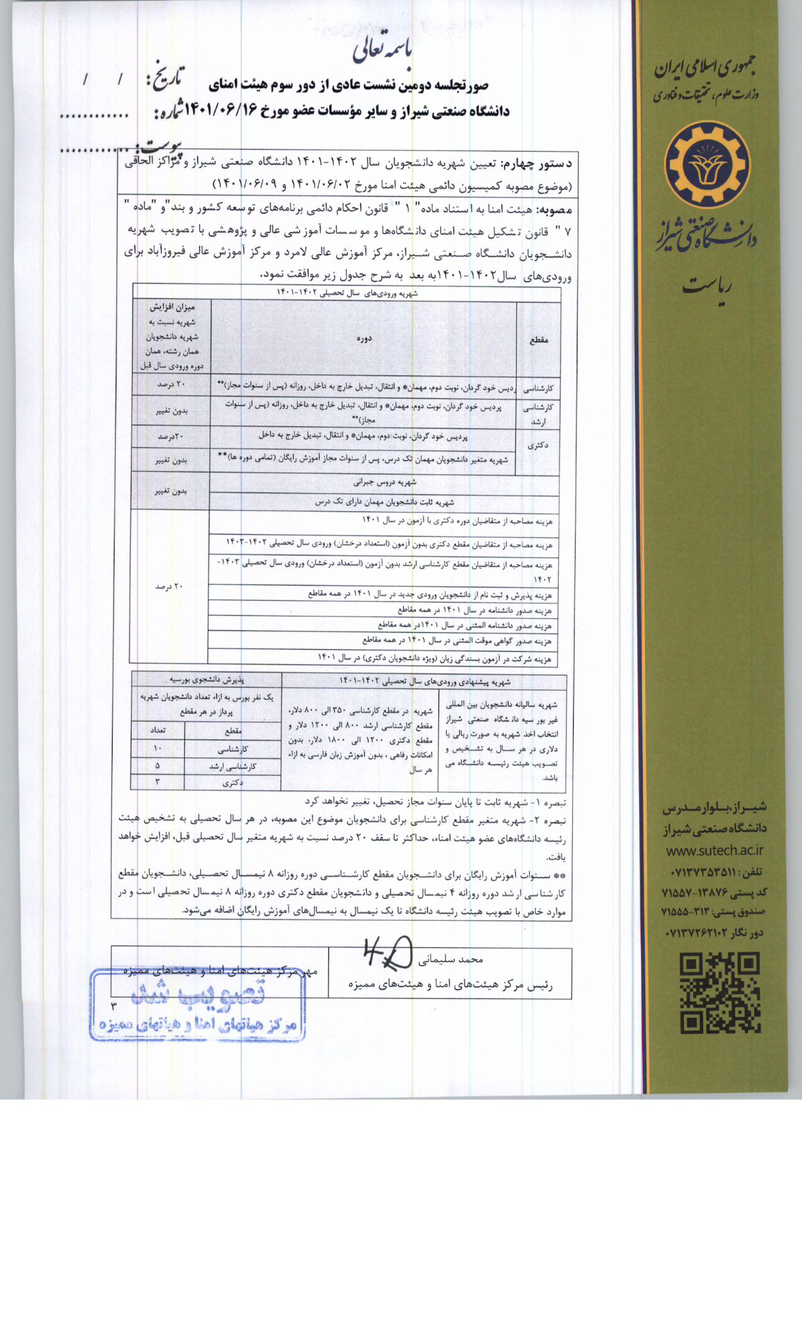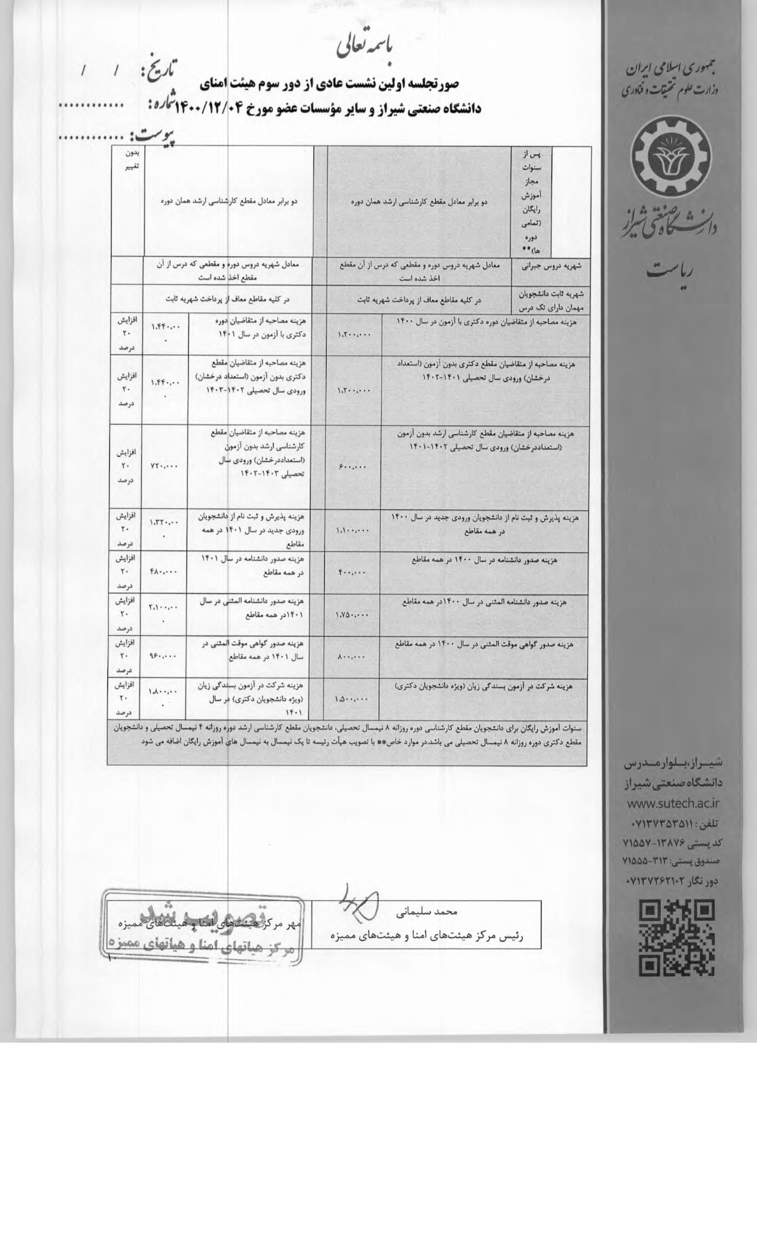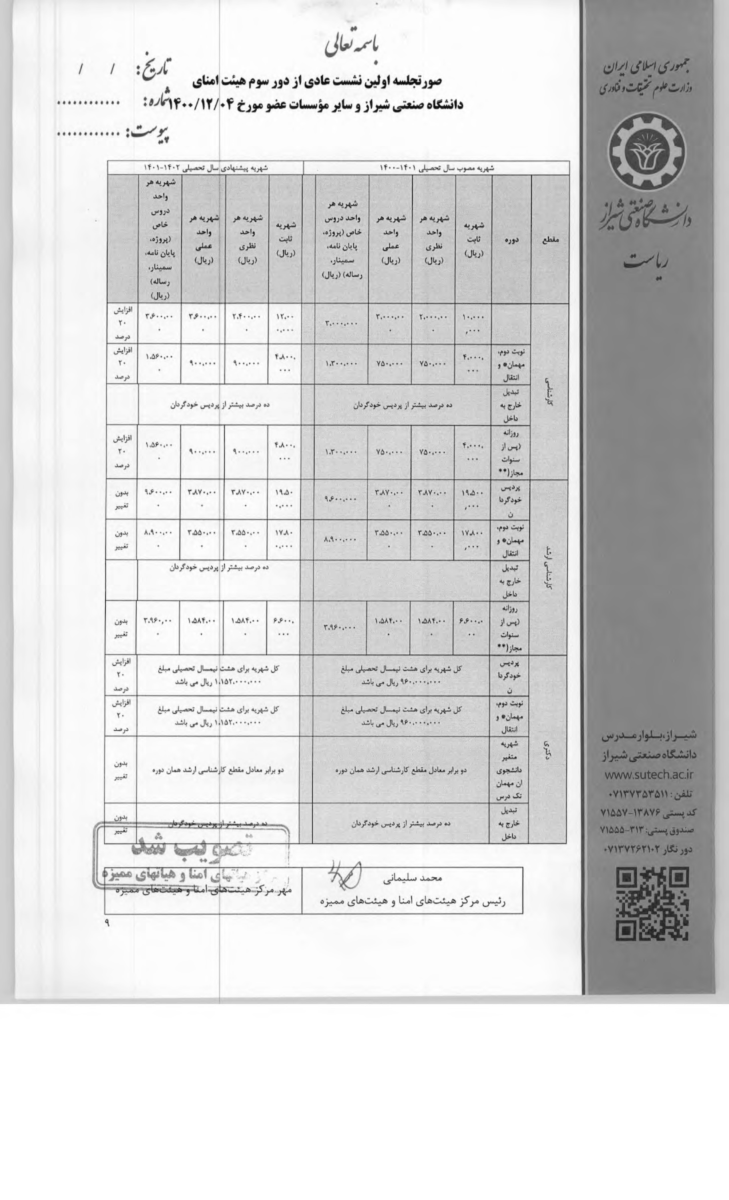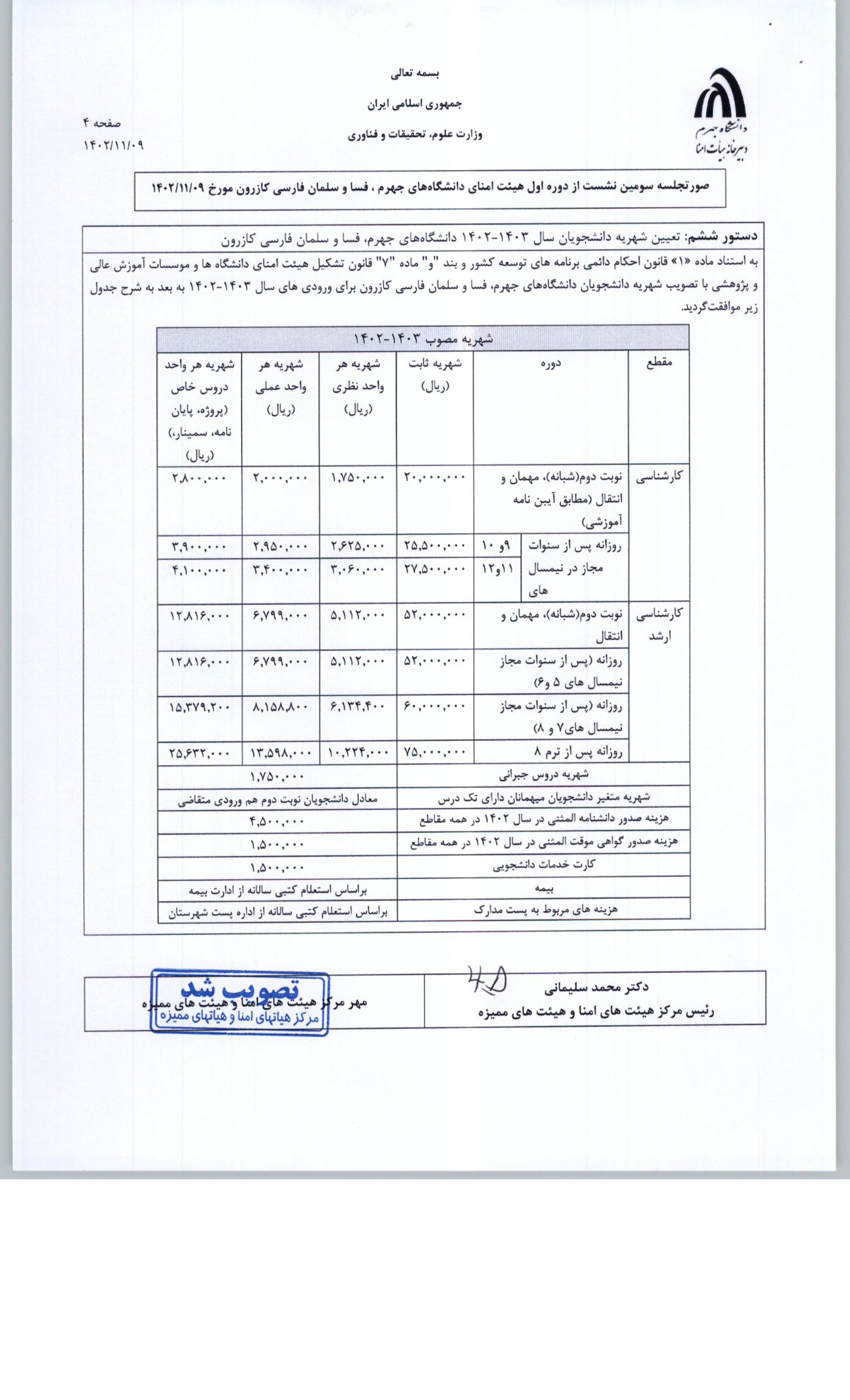 شهریه سالهای تحصیلی 14001401 و 14011402 افزایش شهریه دانشجویان در سال 14011402 شهریه مصوب سال تحصیلی 14021403 |